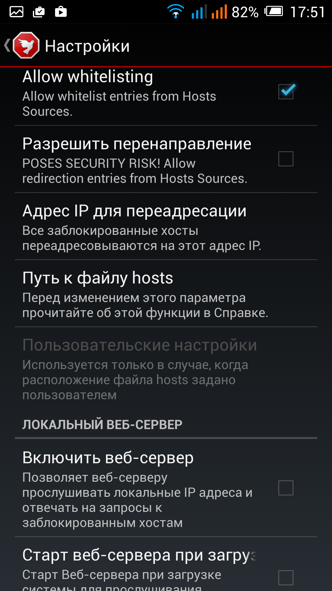 Принцип работы приложения очень простой. В системный файл hosts прописываются все домены, с которых когда либо транслировалась реклама какими либо рекламными сетями. Домены переадресовываются на локальный IP адрес устройства. Далее после запуска приложения с рекламой оно пытается загрузить рекламу с адреса рекламной компании, но он не отвечает, т.к. был подрезан. В результате баннер просто не грузится.