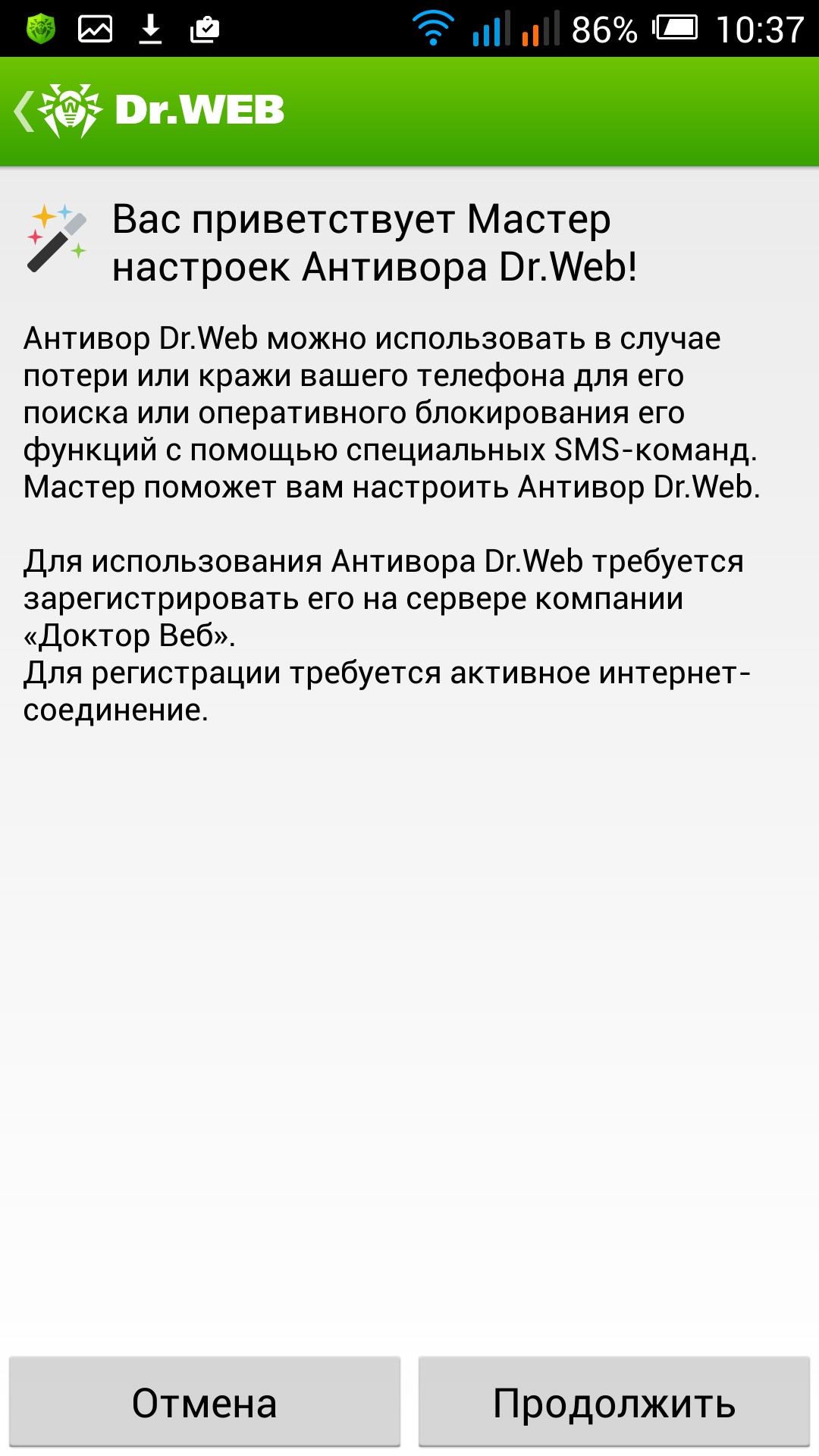 1. Для начала скачиваете и устанавливаете программу Dr.Web Pro по ссылке ниже или с google play. Далее отключаете интернет на устройстве (WiFi и Мобильный интернет).