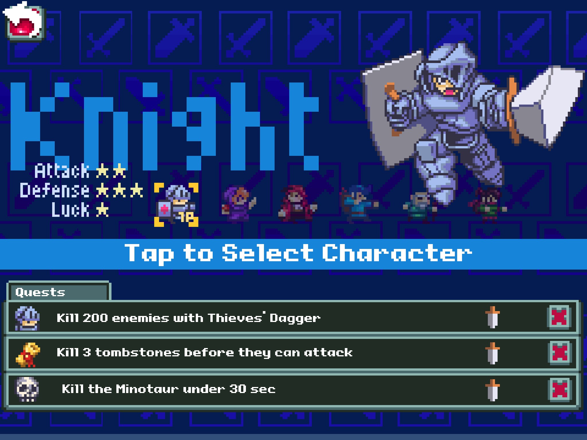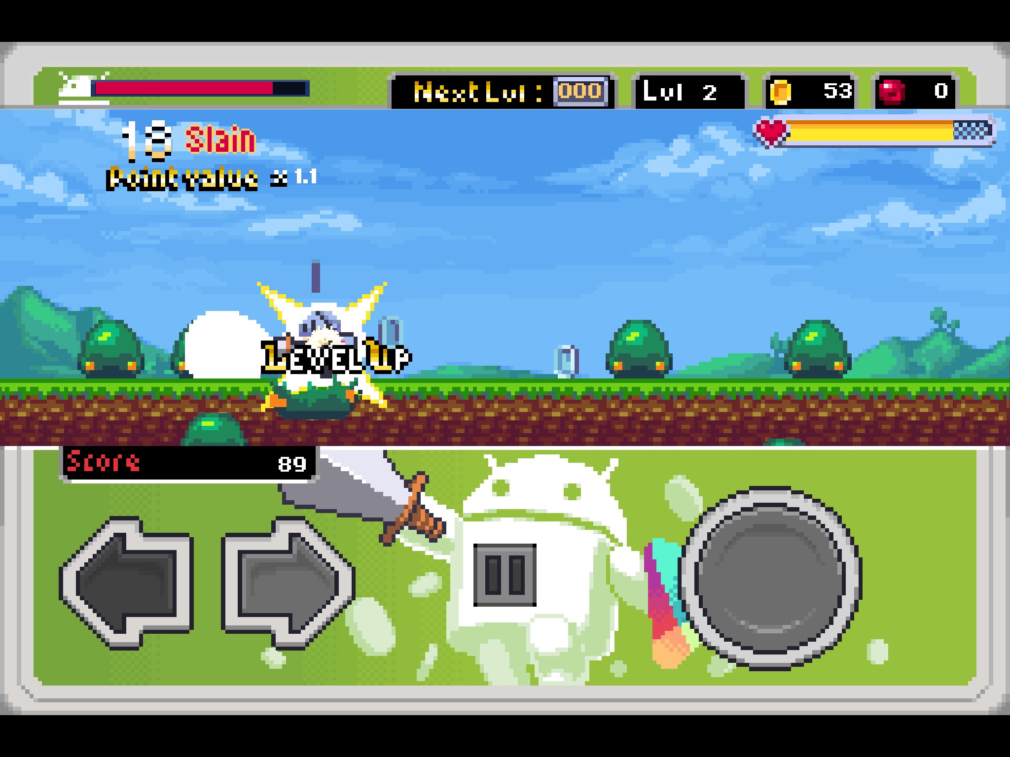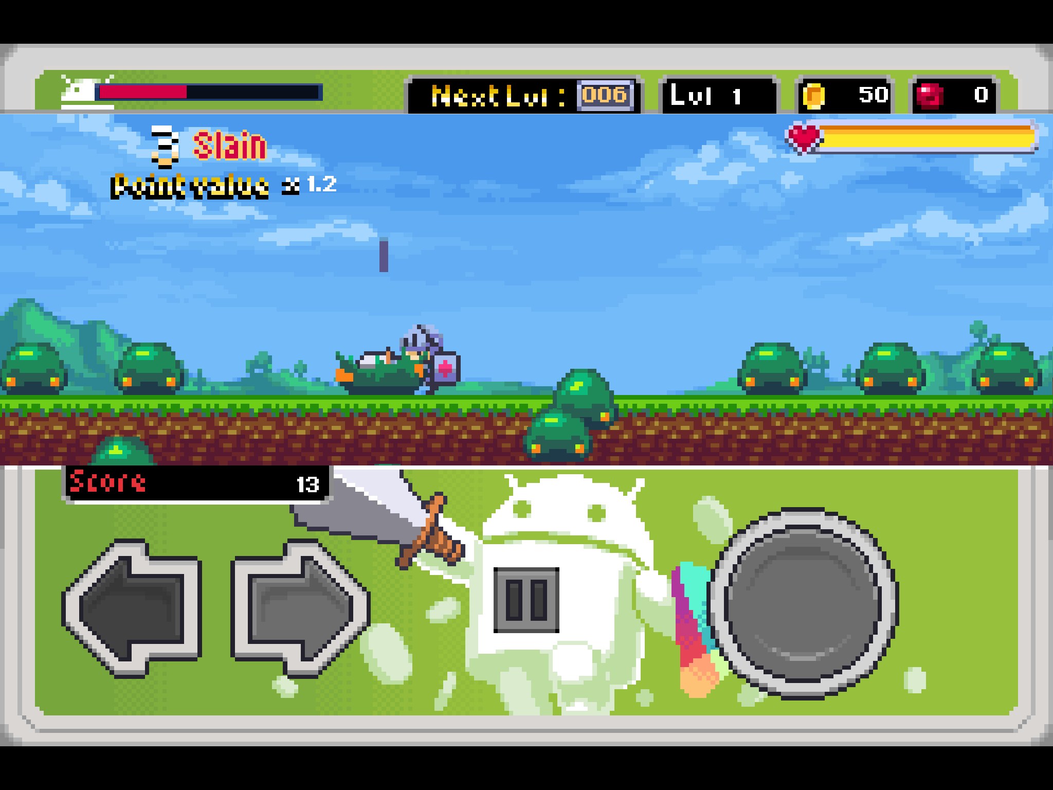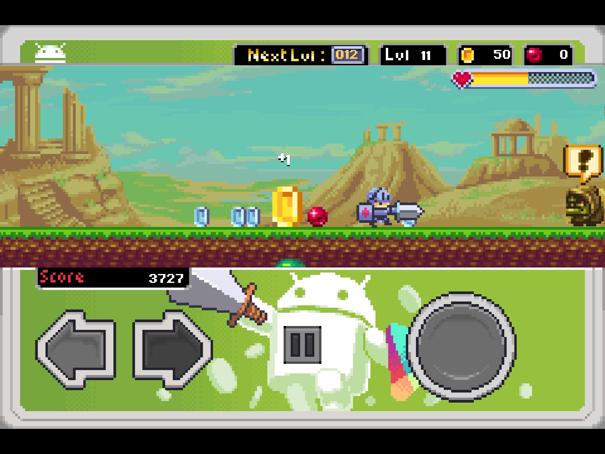 Не назвал бы данную игру от компании FDG Entertainment GmbH & Co.KG потрясающей, но все же они выпустили не плохой продукт с пиксельной графикой и простейшим геймплеем. В игрушке мы можем выбрать рыцаря и отправиться в приключения (если это можно так назвать). На отрезках локации мы будем поражать врагов мечом и стараться не налетать на врага телом. Управление элементарное: стрелки движения влево/вправо и кнопка — прыжок.