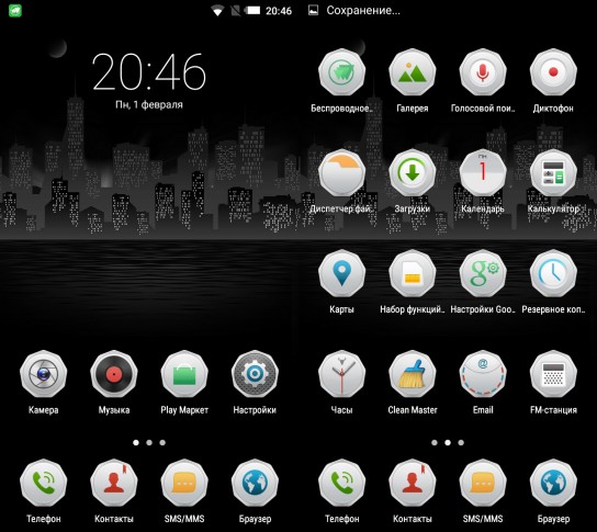 Что касается интерфейса, то новинка от Oukitel работает под управлением операционной системы Android 5.1 Lollipop. Оболочка здесь стандартная, но дизайн ярлыков видоизменен. Три сенсорные кнопки выполняют стандартные действия: «Вызов меню», «Домой» и «Назад». Двойным свайпом вниз из статус-бара (область в верхней части экрана) вы откроете панель быстрого запуска различных функций. Перелистывание между рабочими столами проходит плавно и без каких-либо лагов. На таче имеется олеофобное покрытие, палец скользит по поверхности довольно приятно.