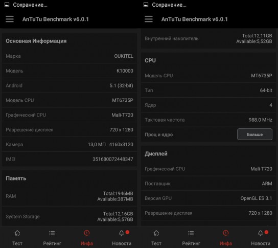 В комментариях к видеоролику о распаковке данного девайса многие подписчики выказывают свое недовольство по поводу того, что при наличии 2 ГБ оперативной памяти и внутреннего накопителя объемом 16 ГБ, за работу смартфона отвечает чрезвычайно слабый в плане производительности процессор MT6735p. С одной стороны мы вынуждены согласиться с мнением большинства – чип MT6735 действительно не отличается высокой производительностью, а его «урезанная» версия и подавно. Поэтому играть в требовательные игры на смартфоне с данным процессором просто нереально. С другой стороны, мы более чем уверены, что смартфон Oukitel K10000 будут покупать преимущественно настоящие мужчины, которым не страшен вес 320 грамми брутальный внешний вид гаджета. А люди такого типа тратить свое время на мобильные игры уж точно не будут.