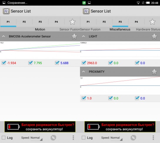 Проверим, какими встроенными датчиками оснастила компания Oukitel модель K10000. Итак, на борту смартфона имеются: акселерометр, датчик освещенности и датчик приближения. Другого набора датчиков от чипсета с этим процессором мы и не ожидали.