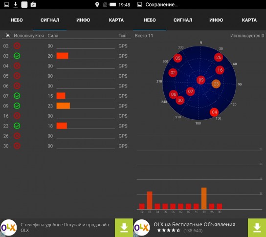 После холодного старта и без подключения к сети интернет смартфон Oukitel K10000 без проблем подключается к спутникам GPS. Что касается спутников GLONASS, то тут всё как и ожидалось — смартфон Oukitel K10000 их не находит.