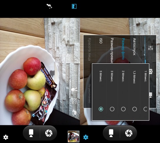 Интерфейс приложения «Камера» вполне стандартный, имеется режим панорамной съемки, режимы «живое» фото, «красивое лицо», возможность активации режима HDR, режим снимка с помощью жеста и так далее. Кнопка регулировки громкости служит в роли кнопки спуска затвора.
