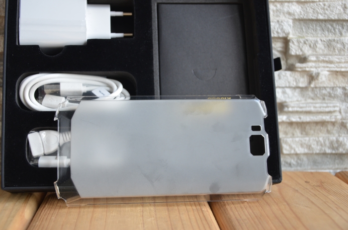 В ней вы обнаружите сам смартфон, зарядное устройство с заявленной силой тока 2А при напряжении до 9V, USB-кабель, OTG-кабель, скрепка для открытия лотка под SIM-карты, краткая инструкция, пластиковый бампер и защитная пленка.