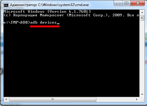 Выполняем команду adb devices