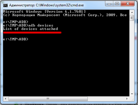 Если после этого просто появилась надпись List of devices attached и все, значит ПК не видит Ваш смарт (или планшет), т.е. драйвера не установлены и их нужно ставить.
