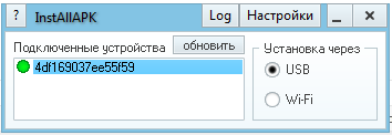 Главное окно программы installAPK