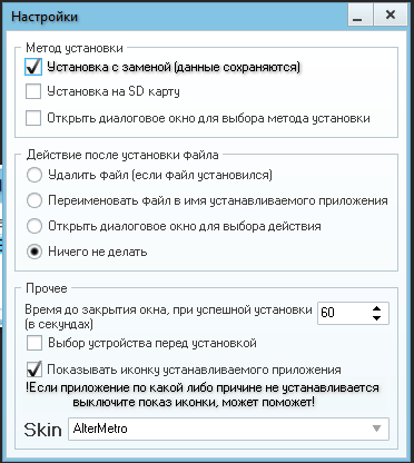 Настройки программы installAPK