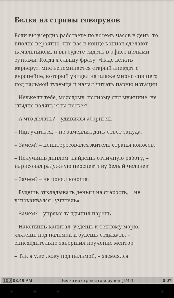 На самом деле читалка очень богатая на функции и содержит абсолютно все что от нее хочется. Если Вы устали от чтения и хотите передохнуть, то просто закрывайте программу, а при следующем запуске можно вернуться на ту же страницу через закладку или кнопку быстрого перехода к последней прочитанной странице.